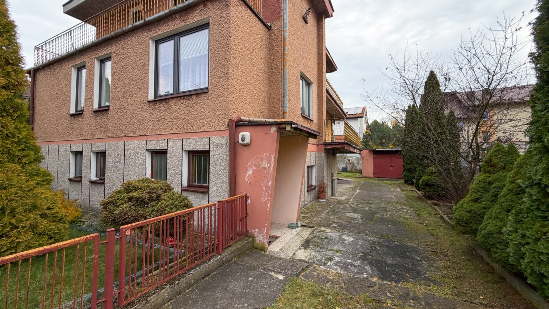 Okna PCV i drewniane starszego typu. Dach pokryty papą.