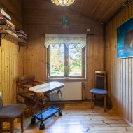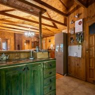 Okna i drzwi wykonane są z drewna – okna wyposażone w okiennice, co nadaje całości niepowtarzalnego uroku. Wnętrze w całości wykończone w drewnie, podłogi z deski sosnowej, co podkreśla ciepły i naturalny charakter domu.