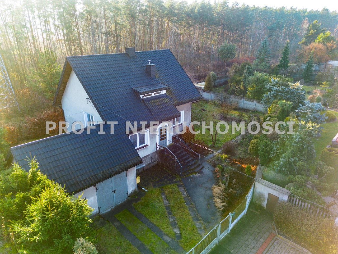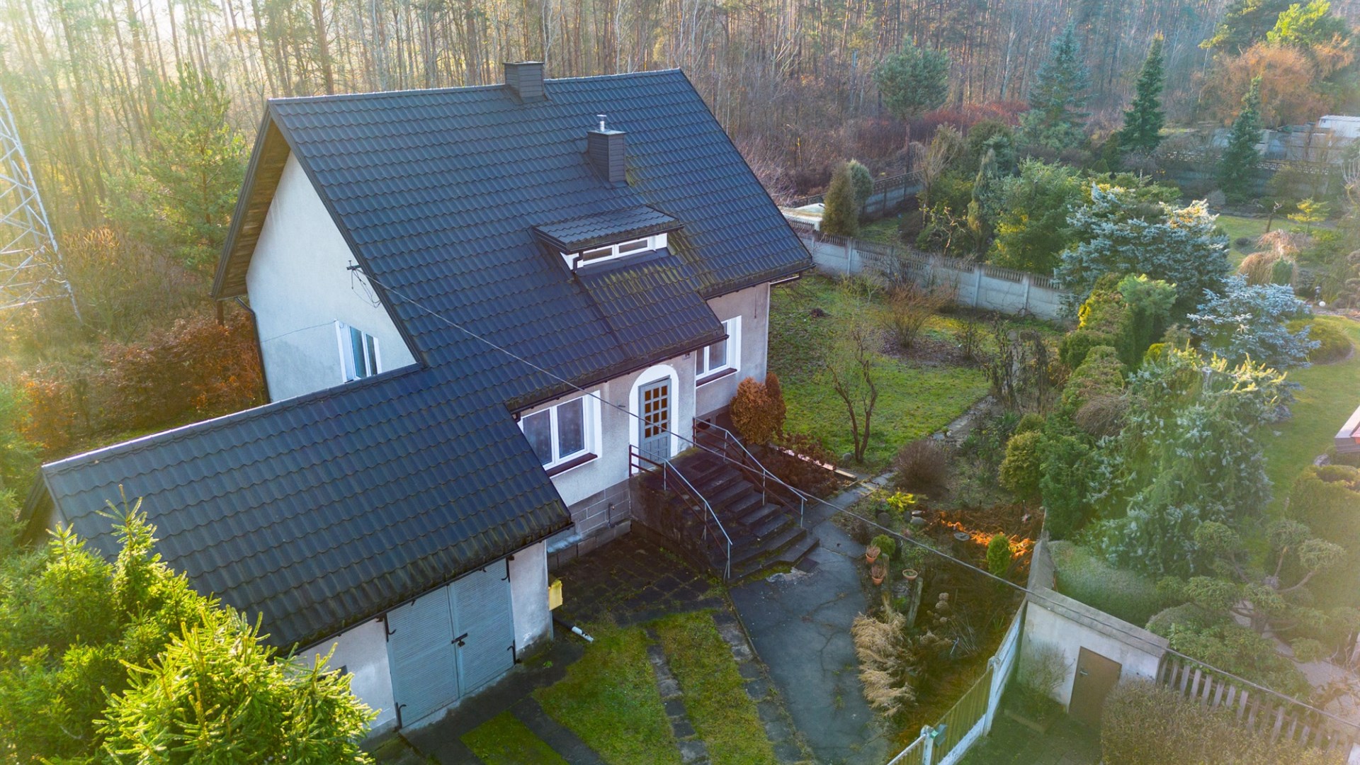 Położenie tej nieruchomości w zacisznym miejscu, przy ścianie lasu.