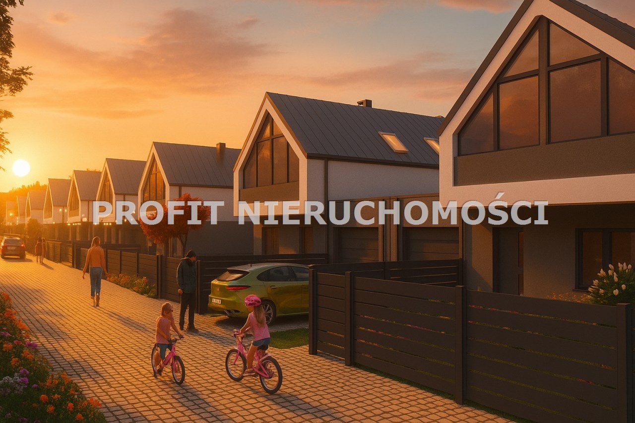 Każdy dom posiada garaż w bryle budynku, prywatny ogród oraz dodatkowe miejsce postojowe.