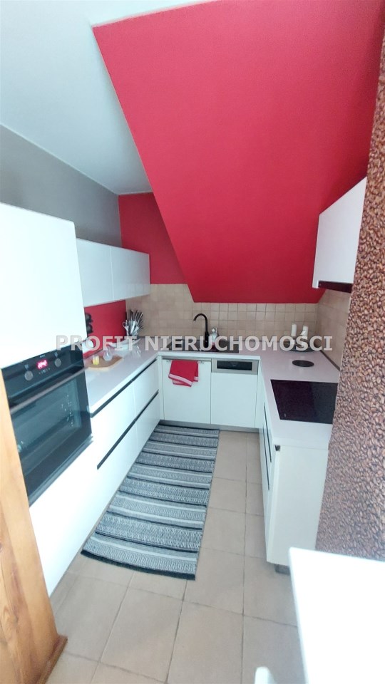 Na piętrze mieszczą się, salon, dwa pokoje, pomieszczenie gospodarcze - garderoba, kuchnia, łazienka.