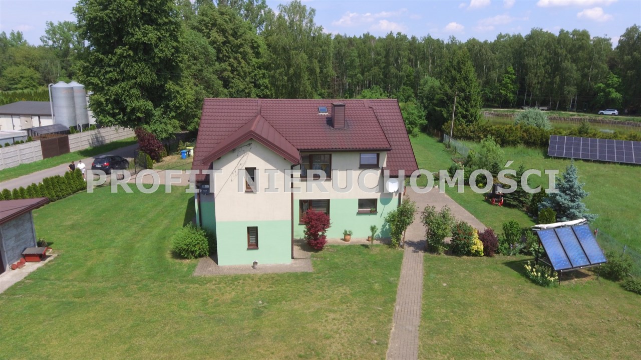 Elewacja docieplona, pomalowana. Okna PCV. Na dachu położona jest blacha.