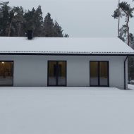 Dom o powierzchni całkowitej 102,67m2 funkcjonalny, wybudowany z myślą o komforcie mieszkańców z praktycznym układem pomieszczeń z podziałem na strefę dzienną i prywatną. W strefie dziennej znajduje się salon z jadalnią i otwartą kuchnią razem tworzące dużą otwartą przestrzeń z salonu wyjście na duży taras na którym można delektować się poranną kawą z widokiem na las, odpocząć po całym dniu pracy. Obok kuchni znajduje się praktyczna spiżarnia, natomiast w strefie prywatnej są 3 sypialnie ( od 11m² do 13,3m²) w tym jedna z garderobą oraz wspólna łazienka.