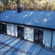 Do budowy zostały użyte materiały wysokiej jakości min. cegła ceramiczna Termoton Owczary, ocieplenie zewnętrzne wełną dobrej klasy, ocieplenie strychu wełną 40cm, nowoczesne okna trzyszybowe, w całości ogrzewanie podłogowe, na dachu znajduje się blachodachówka firmy Pruszyński, drzwi wejściowe firmy Wikęd.