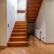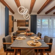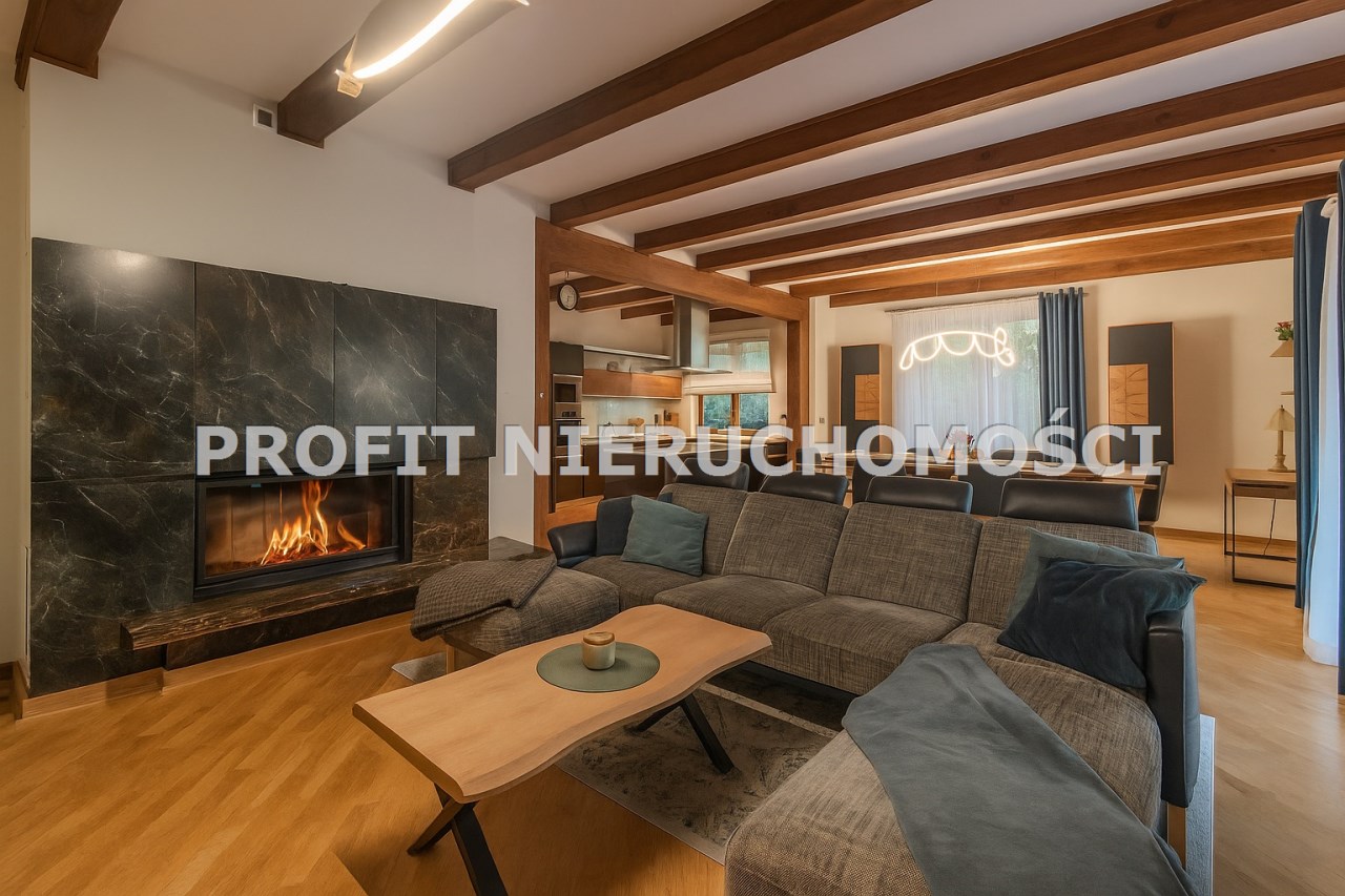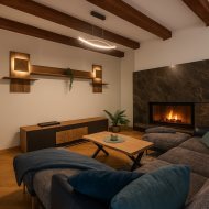 W salonie znajduje się zamknięty kominek z rozprowadzeniem ciepła na poddasze.