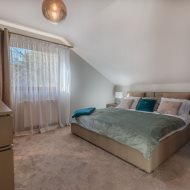 Poddasze użytkowe: trzy obszerne sypialnie, jedna z nich z garderobą, pokój kąpielowy z dużą wanną, bidetem, dwoma umywalkami i sedesem.