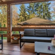 Z dwóch sypialni wychodzi się na przestronny, zadaszony taras.