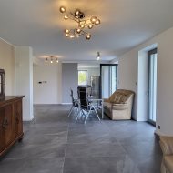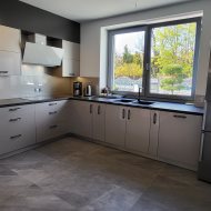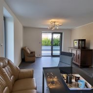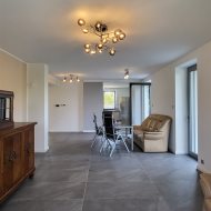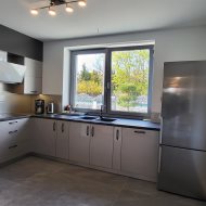 Wszystkie sprzęty nowe z gwarancją, bardzo wysoka jakość materiałów i wykończenia domu. Meble i sprzęty są nowe, na gwarancji. Sprzęt AGD na wyposażeniu: zmywarka, lodówka z zamrażarką, płyta indukcyjna, piekarnik, czajnik, pralka, zestaw nagłośnieniowy zabudowany w suficie salonu. Mieszkanie jest bardzo jasne, wygodne i przytulne, nowocześnie urządzone – idealne także do pracy w domu.