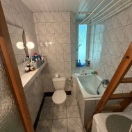 - łazienka z oknem 3m2 z oknem na północ ( nad całą łazienka antresola), ogrzewanie grzejnik elektryczny konwektor 500W, na podłodze terakota, ściany glazura