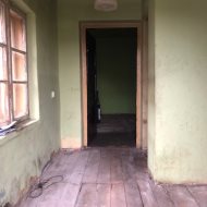 -kuchni/przedpokoju o powierzchni 4,86m2 (wysokość pomieszczenia 240cm) - na podłodze są deski, na ścianach  również są tynki wapienne.