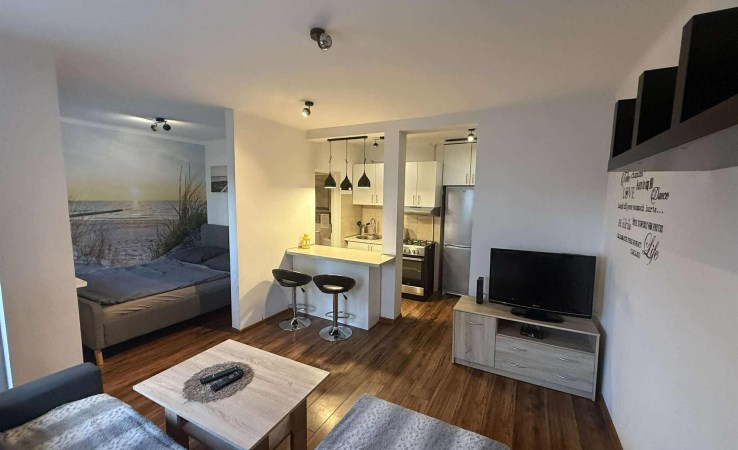 Mieszkanie całkowicie wyposażone, składa się z pokoju o pow 16m2 oraz aneksu kuchennego , łazienki i przedpokoju.