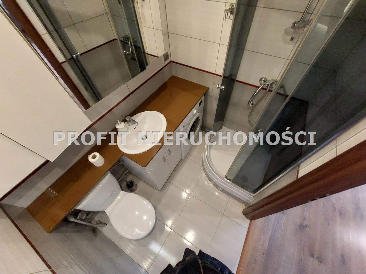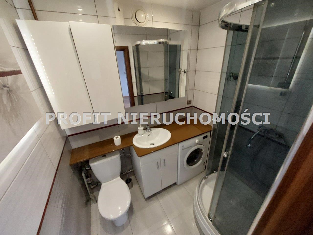 ŁAZIENKA z WC- kabina prysznicowa, umywalka, szafka na kosmetyki, pralka
