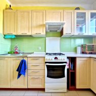 - kuchnia 7m2) w glazurze i terakocie z zabudową wyposażona w lodówkę kuchenkę gazową z piekarnikiem