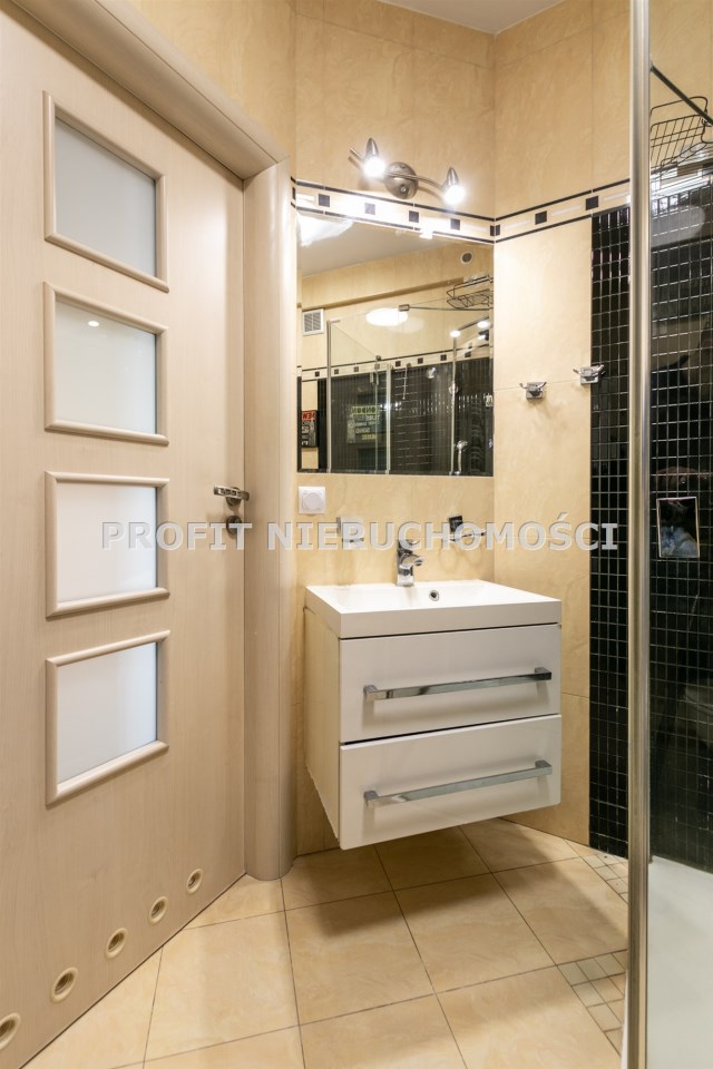 Łazienka wyposażona w kabinę prysznicową.