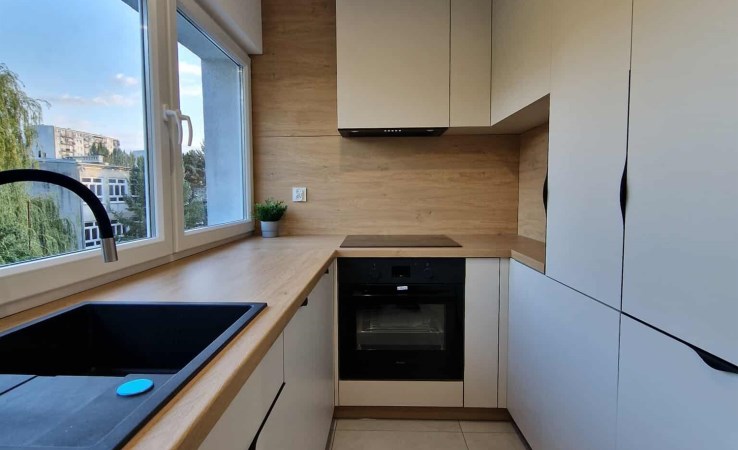 Mieszkanie ma 74 m2 i na jego powierzchnię składają się - salon z otwartą kuchnią, dwie ustawne sypialnie, przestronny przedpokój z szafami w zabudowie oraz łazienki w której mamy wannę z zamontowaną deszczownicą co umożliwia wzięcie prysznica, i dwie umywalki które ułatwiają domownikom poranne szykowanie się do pracy/ szkoły, jest również osobna toaleta.