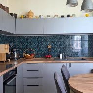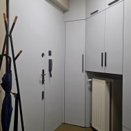 Wspominałam, że mieszkanie jest funkcjonalne, bo właściciele na przestrzeni korytarza wydzielili dodatkową przestronną garderobę oraz liczne miejsca do przechowywania w szafach w zabudowie.