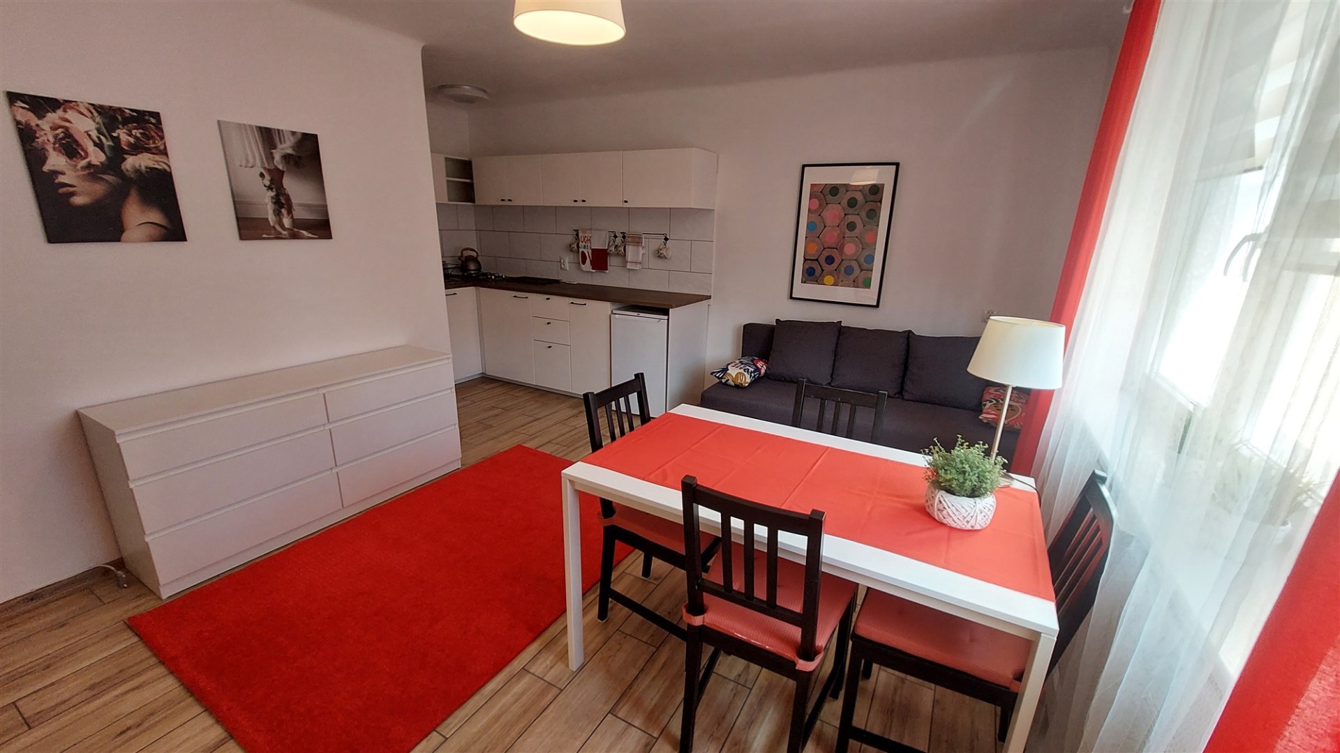 Na powierzchnię 29m2 składa się przedpokój, łazienka, salon z aneksem kuchennym i częścią jadalnianą.