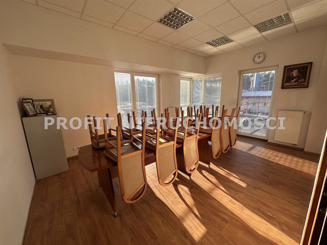 Budynek jest ocieplony, okna PCV, w pomieszczeniach na podłogach panele. Biura umeblowane, jeden gabinet z systemem alarmowym, a cały plac monitorowany.