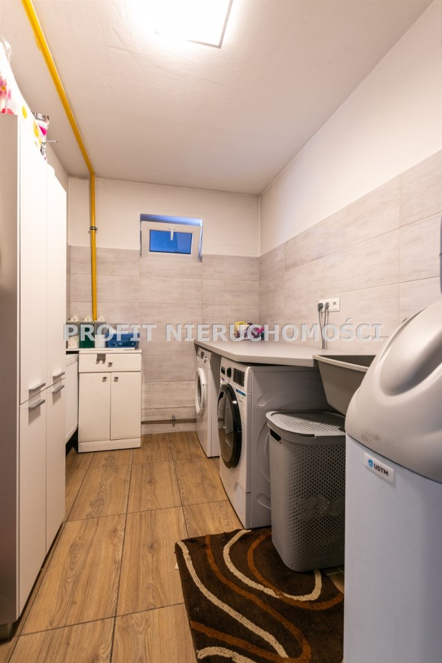 Dom całkowicie podpiwniczony z 2 miejscami garażowymi. Trzy pomieszczenia gospodarcze gdzie z jednego jest zrobiona pralnia z suszarnią a dwa pozostałe pomieszczenia można zaadoptować do przechowywania m.in. rowerów, mebli ogrodowych.