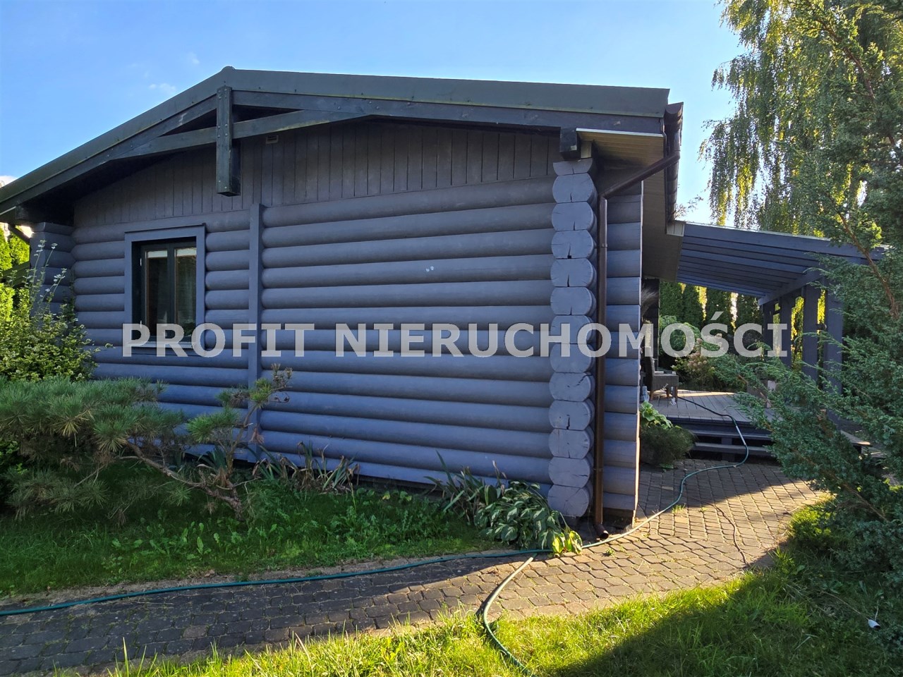 Przykuwający uwagę domek z bala w urokliwej bryle budynku z projektu "Magnus M-Bal".