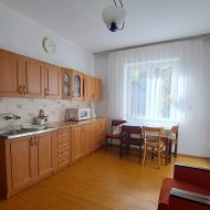 Kuchnia to pomieszczenie z wejściem z przedpokoju i przejściowe wyjściem do sąsiadującego pokoju, co daje możliwość otworzenia przestrzeni i aranżacji części domu na otwartym planie. Z kuchni prowadzą drzwi do małego korytarza, gdzie zlokalizowana jest spiżarnia i wejście do kotłowni.