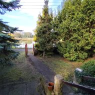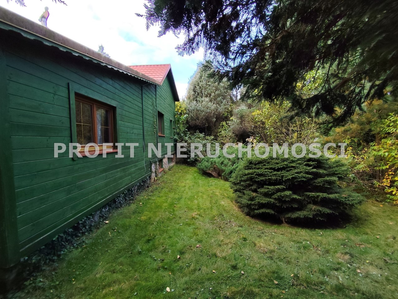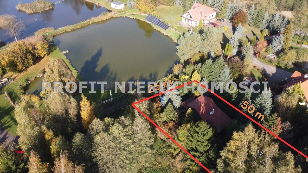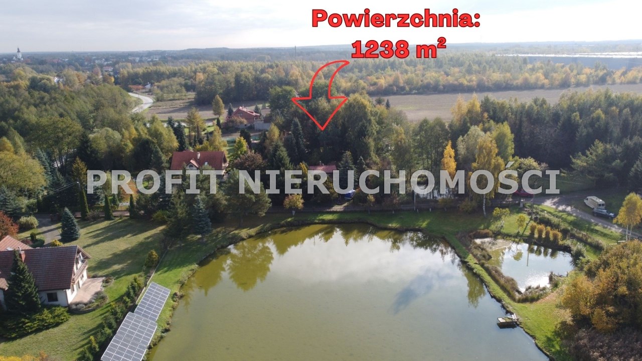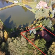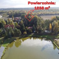 Działka o powierzchni 1238 m² jest w pełni zagospodarowana – dużo zieleni, krzewów oraz przestrzeni do wypoczynku. Nieruchomość od dużego stawu oddziela jedynie droga dojazdowa, co czyni to miejsce idealnym dla w miłośników natury.