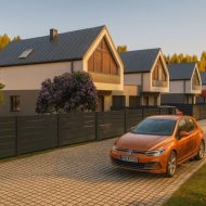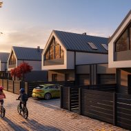 Każdy dom posiada garaż w bryle budynku, prywatny ogród oraz dodatkowe miejsce postojowe.