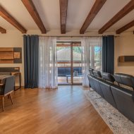 Z dwóch sypialni wychodzi się na przestronny, zadaszony taras.