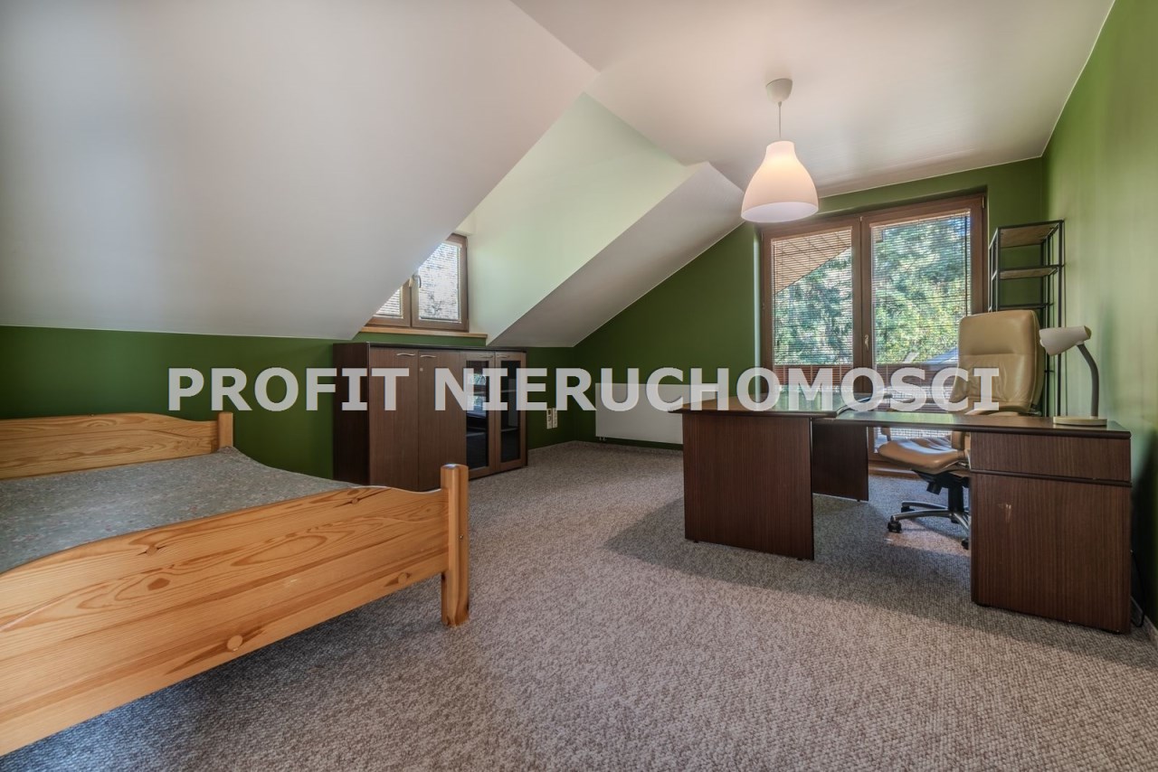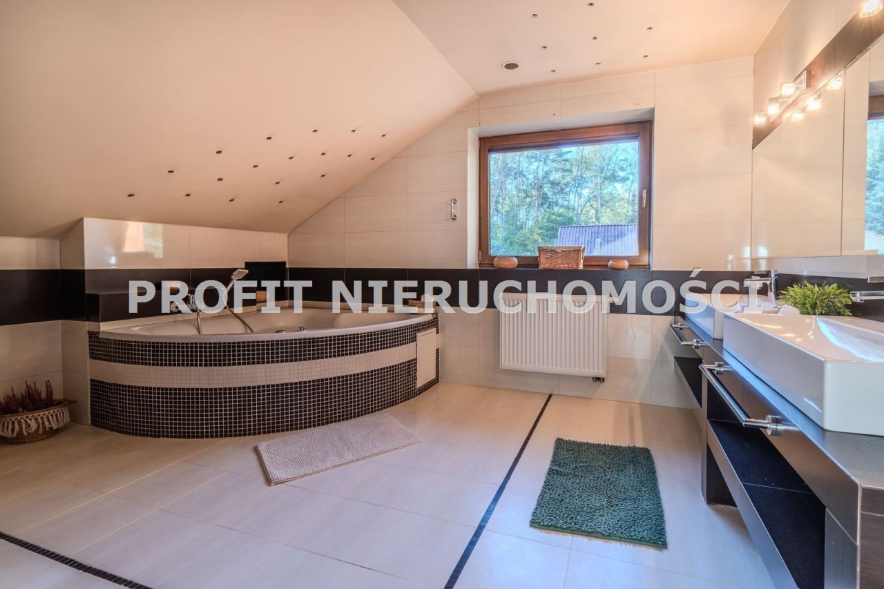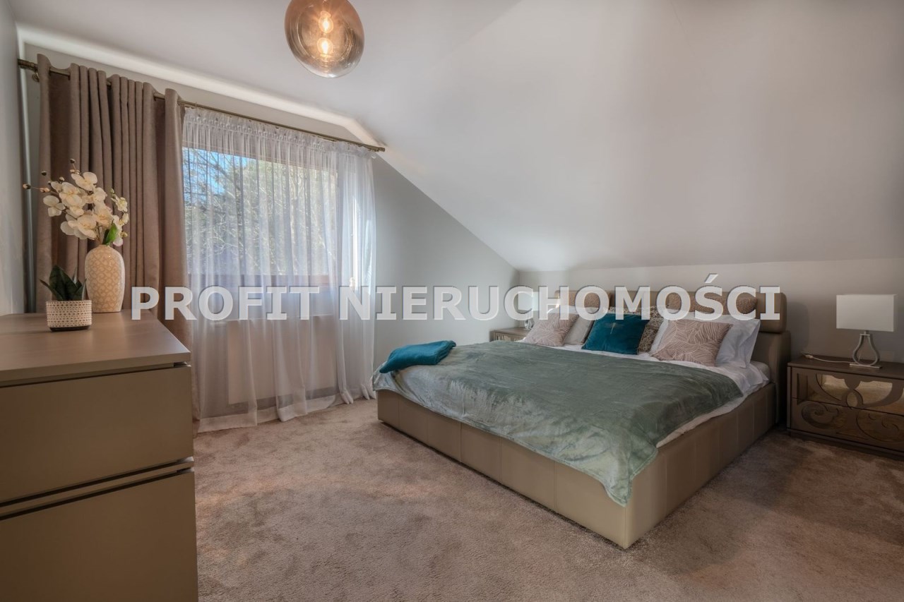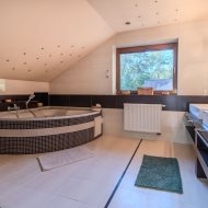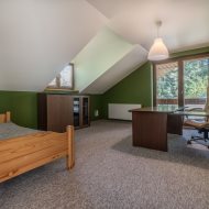 Poddasze użytkowe: trzy obszerne sypialnie, jedna z nich z garderobą, pokój kąpielowy z dużą wanną, bidetem, dwoma umywalkami i sedesem.