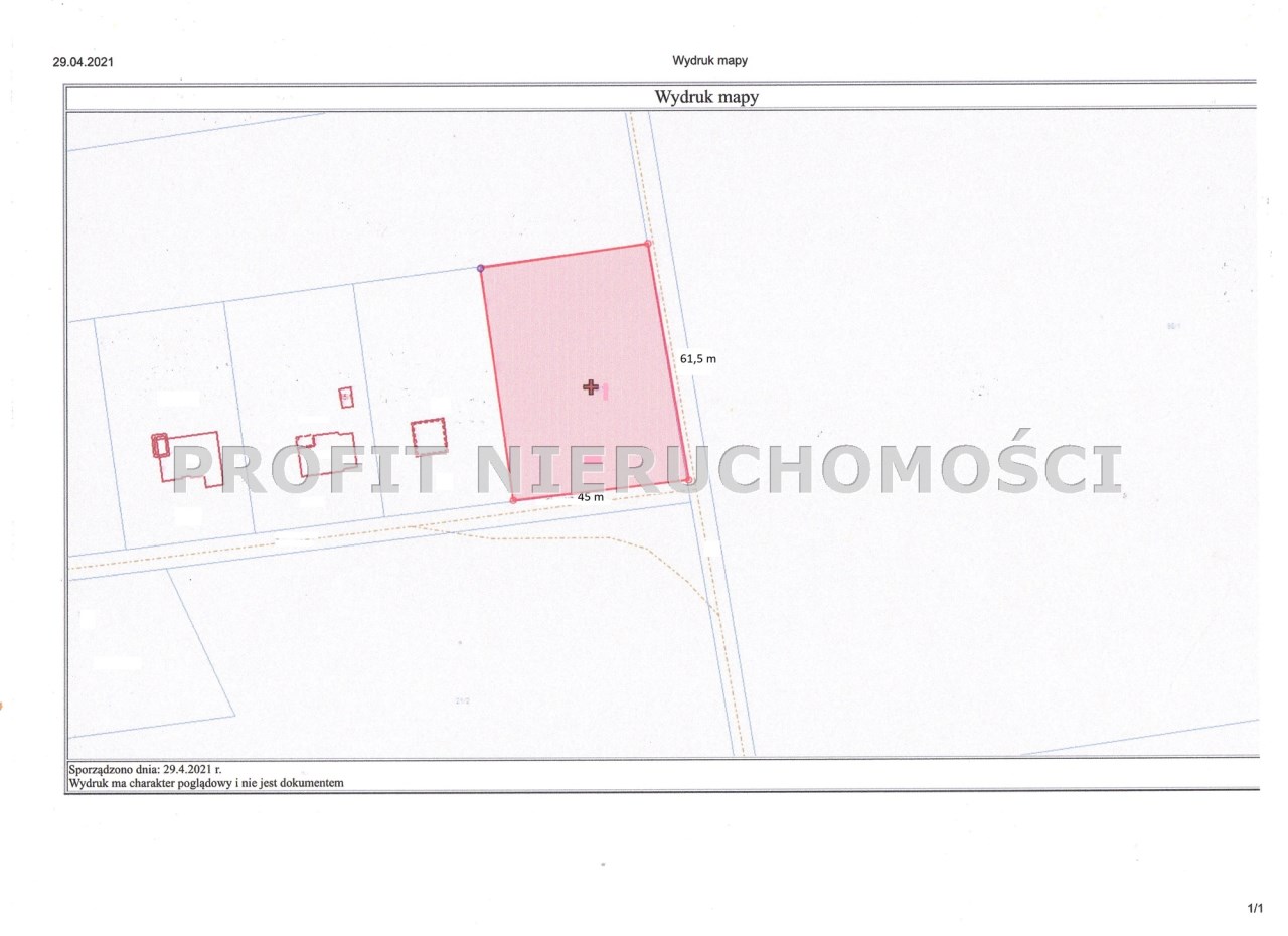 Działka o kształcie prostokąta i wymiarach 45x61 m. Działka zadrzewiona (samosiejki mieszane drzewa kilkuletnie).