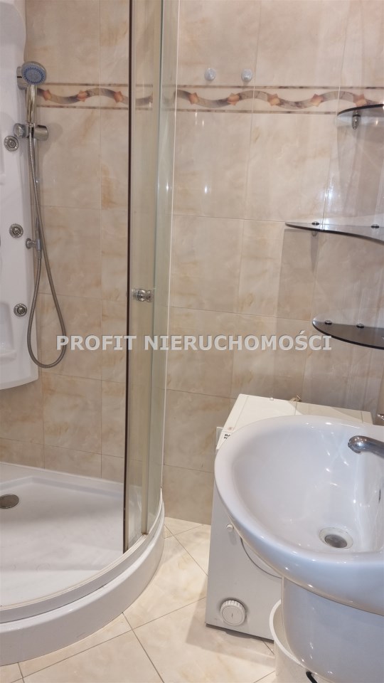 - ŁAZIENKA: ściany: glazura; podłoga: terakota; umywalka, prysznic, pralka, lustro, sedes