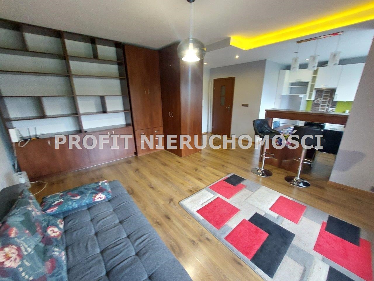 POKÓJ -Na ścianach gładzie na podłodze panele duża szafa, regał, kanapa z funkcją spania.