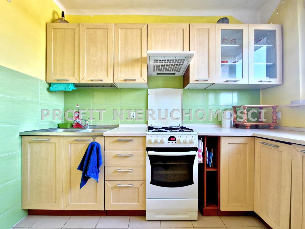 - kuchnia 7m2) w glazurze i terakocie z zabudową wyposażona w lodówkę kuchenkę gazową z piekarnikiem