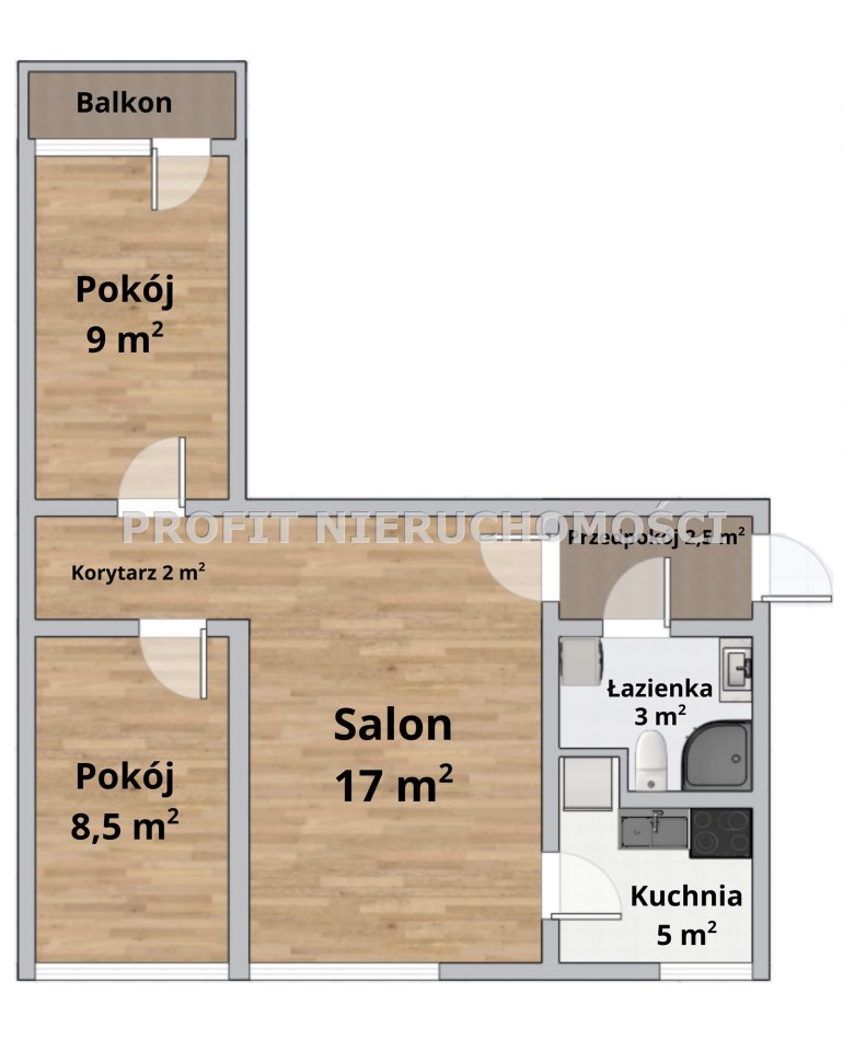Łączna powierzchnia: 47 m² + balkon + piwnica.