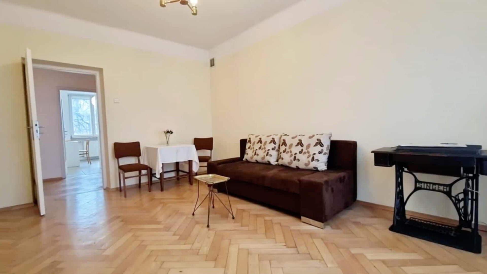 Mieszkanie dwupokojowe w pełni rozkładowe, ustawne, widne pokoje. Jeden pokój na planie kwadratu, drugi prostokąta. Wysokość w pomieszczeniach 2,75 m. Na podłodze ładny bukowy parkiet, po gruntownej renowacji czyli ponownym zerwaniu, przełożeniu, cyklinowaniu i polakierowaniu. Mieszkanie do odmalowania i do zamieszkania. W jednym pokoju jest wbudowana szafa w wnękowa, z zamykanym biurkiem. W kuchni nowe meble pod wymiar. Łazienka z wanną, umywalką i wc.