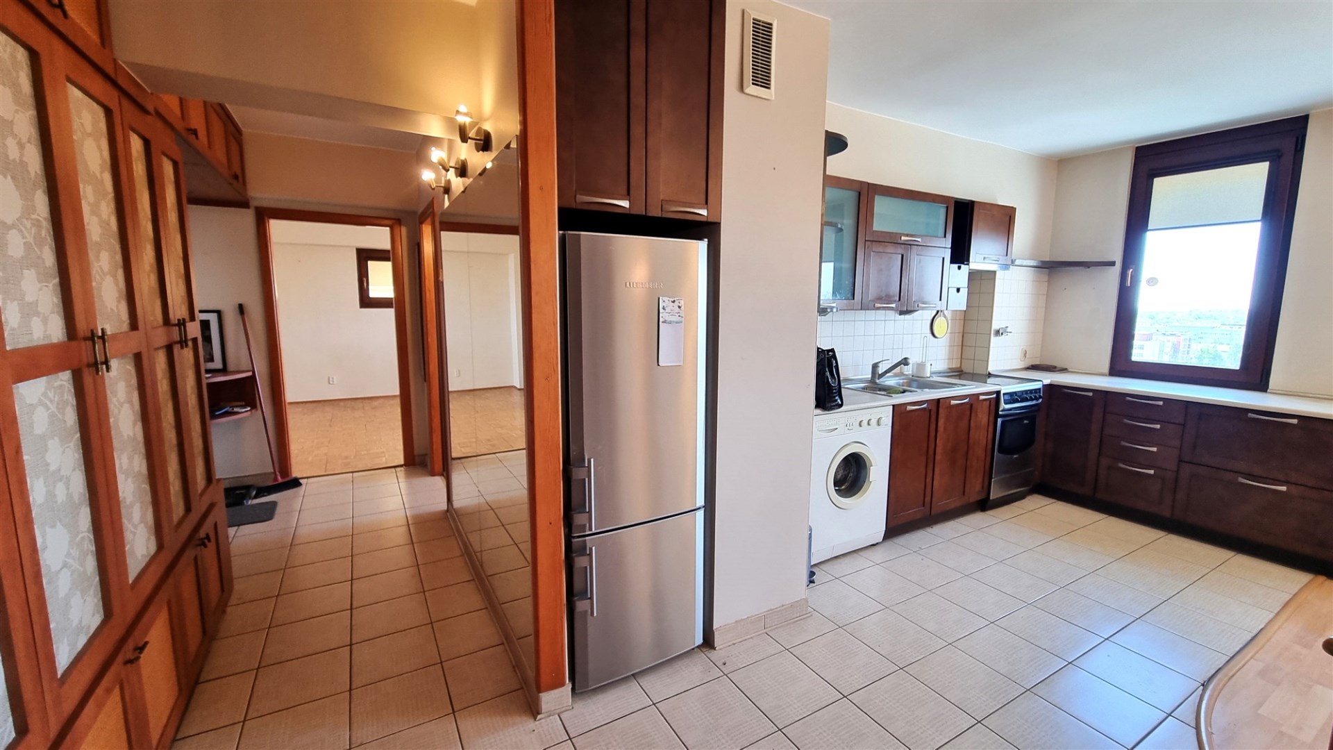 HOLL: podłoga terakota, ściany gładzie gipsowe, jedna ściana z luster, szafa garderoba w zabudowie, szafka na buty i wieszak - w cenie