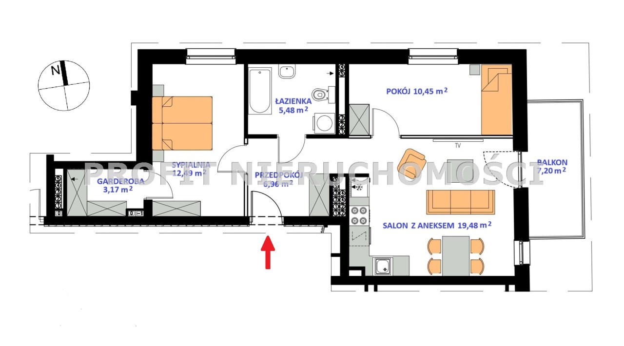 - SALON Z ANEKSEM KUCHENNYM: 19,48 m