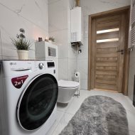Okna aluminiowe, rolety zewnętrzne oraz nowoczesne wykończenie zapewniają komfort i bezpieczeństwo. Ogrzewanie gazowe oraz ciepła woda z pieca gazowego gwarantują niskie koszty utrzymania.