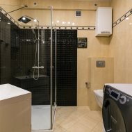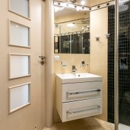 Łazienka wyposażona w kabinę prysznicową.